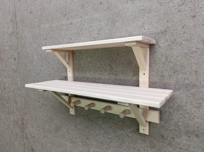 Важливим атрибутом інтер'єру лазні або сауни є дерев'яні вішалки та полки. Вішалки необхідні в роздягальні-передбаннику для рушників, халатів, одягу та шапок. У самій парної вони використовуються для мочалок, віників, кухлів, шапок та черпаків. Наявність гарних вішалок у приміщенні, вносить організованість і порядок у банну церемонію.